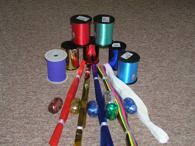Stuha vajíčko v šíři 0,5 cm a v délce 20 m, na prodej v maloobchodě, baleno po 1 ks, kartón, různě lesklé či obyčejné.