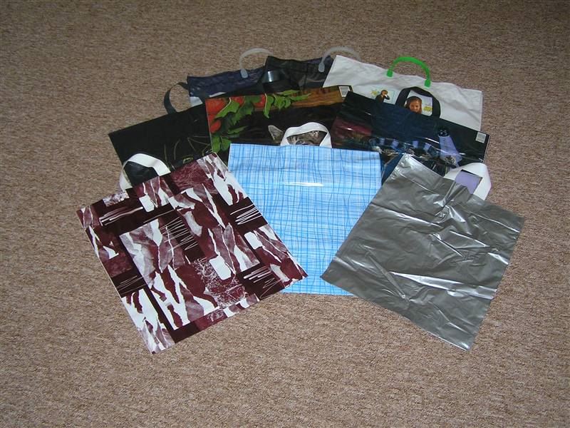 Tašky o objemu 3 kg, 4 kg, 10 kg, 12 kg a 15 kg. Barva těchto tašek je v základu červená, modrá, zelená, bílá, jednobarevná nebo v kombinaci s bílými pruhy. Tyto tašky jsou baleny po 100 ks a kartón vetšinou obsahuje 2 000 ks tašek